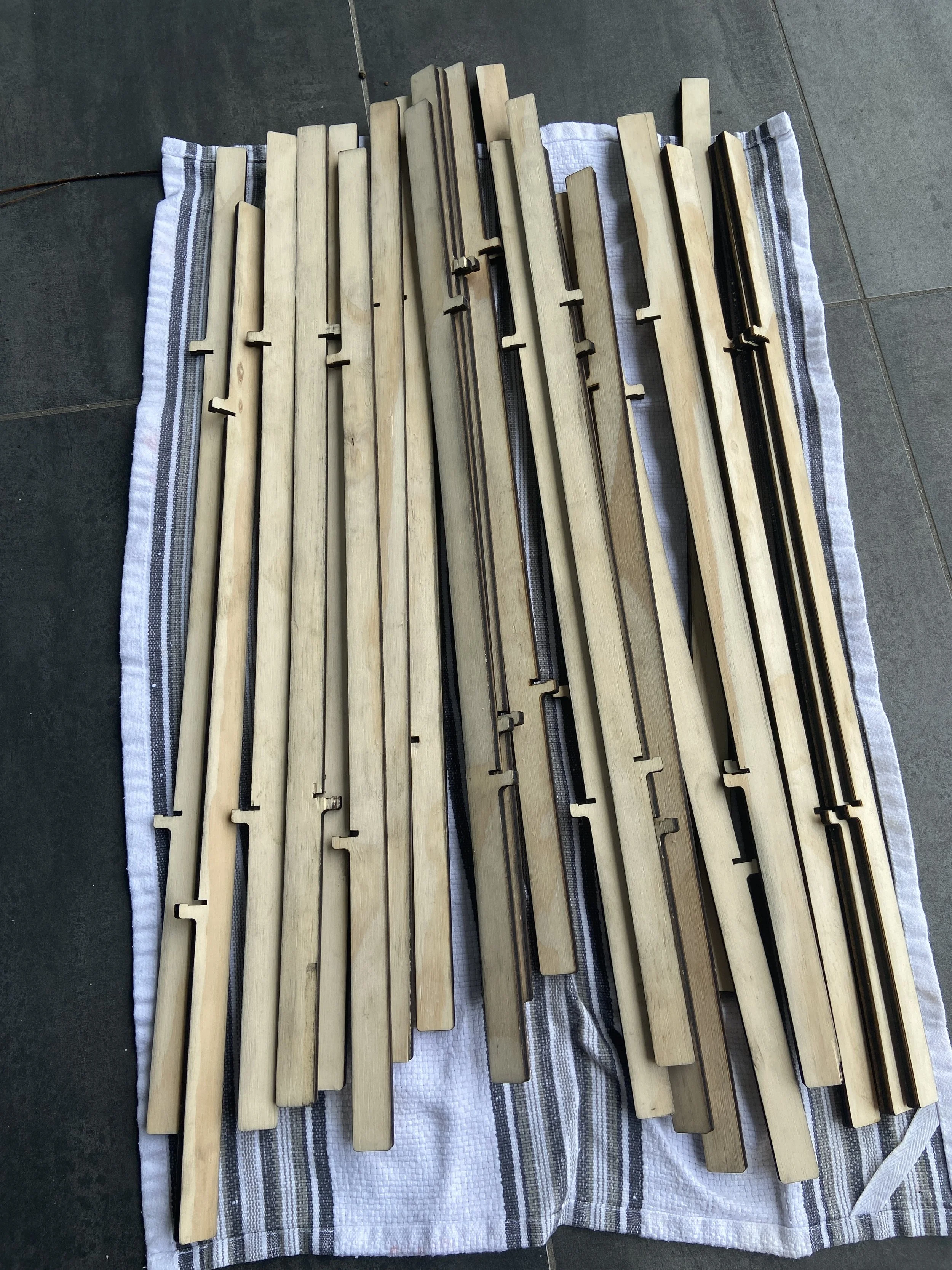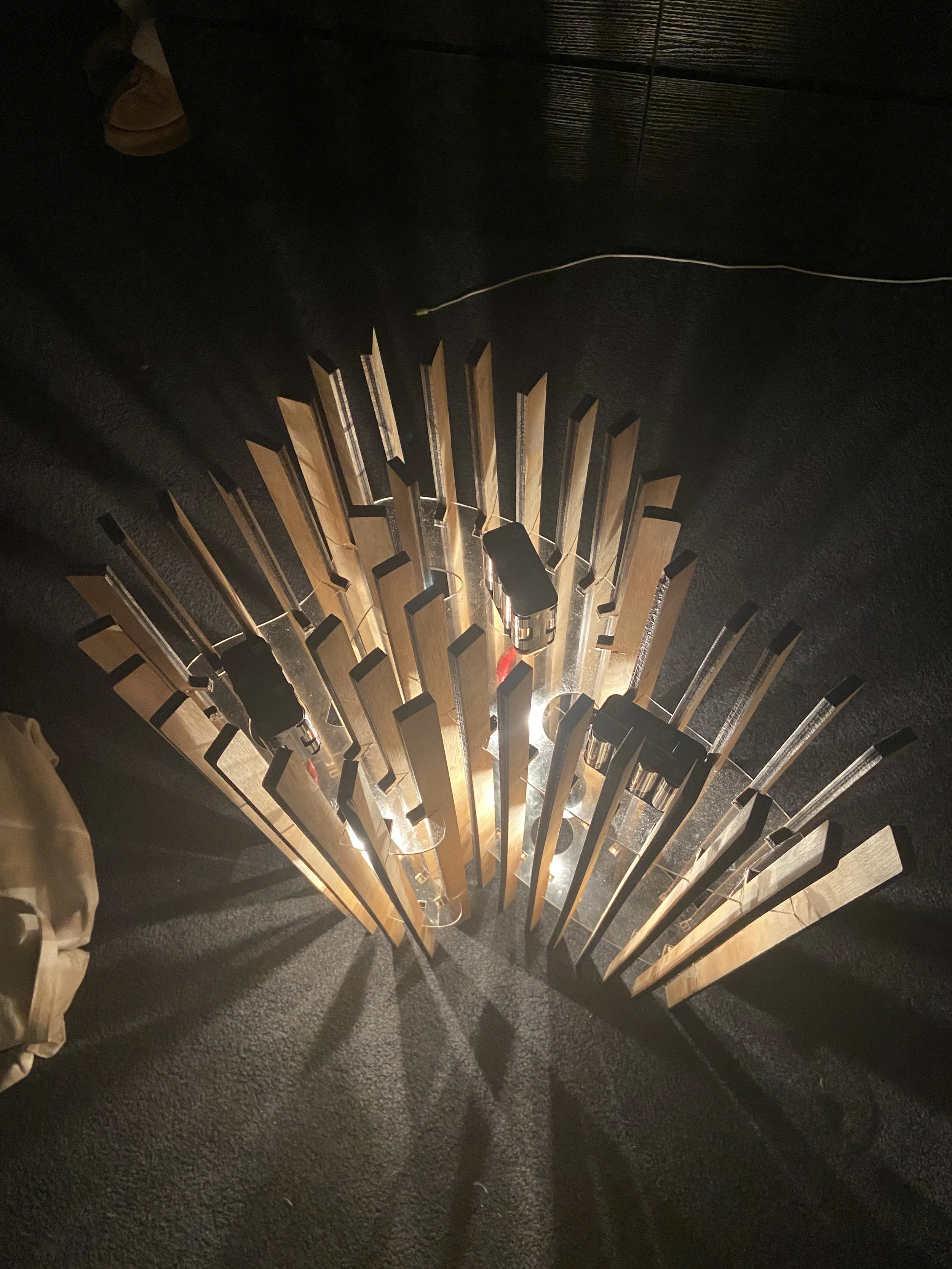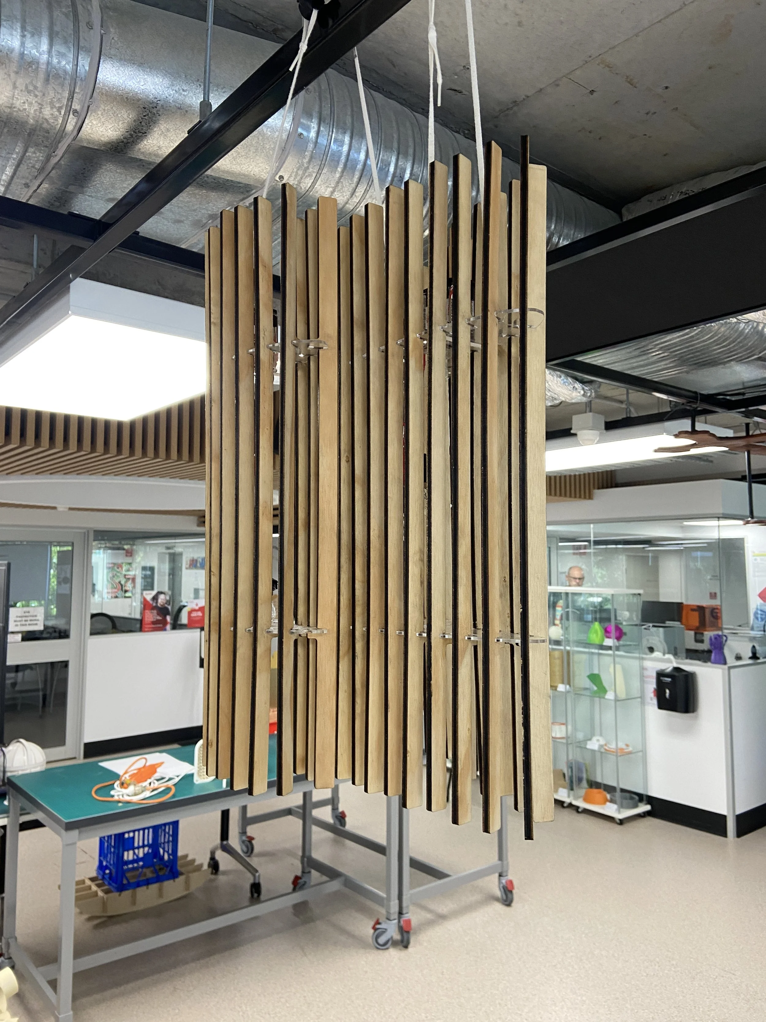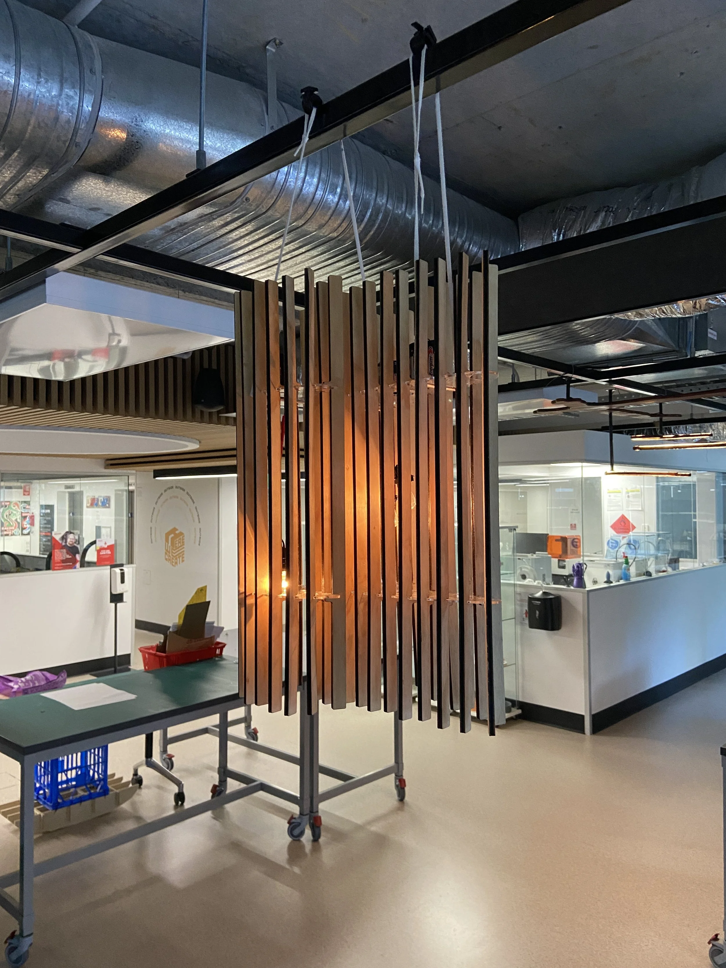 Lightburn was used for the laser cutting process. The wooden slats were cut from 7mm plywood and the acrylic plate from 3mm clear acrylic. The total cutting time for these pieces was 1 hour and 30 minutes.