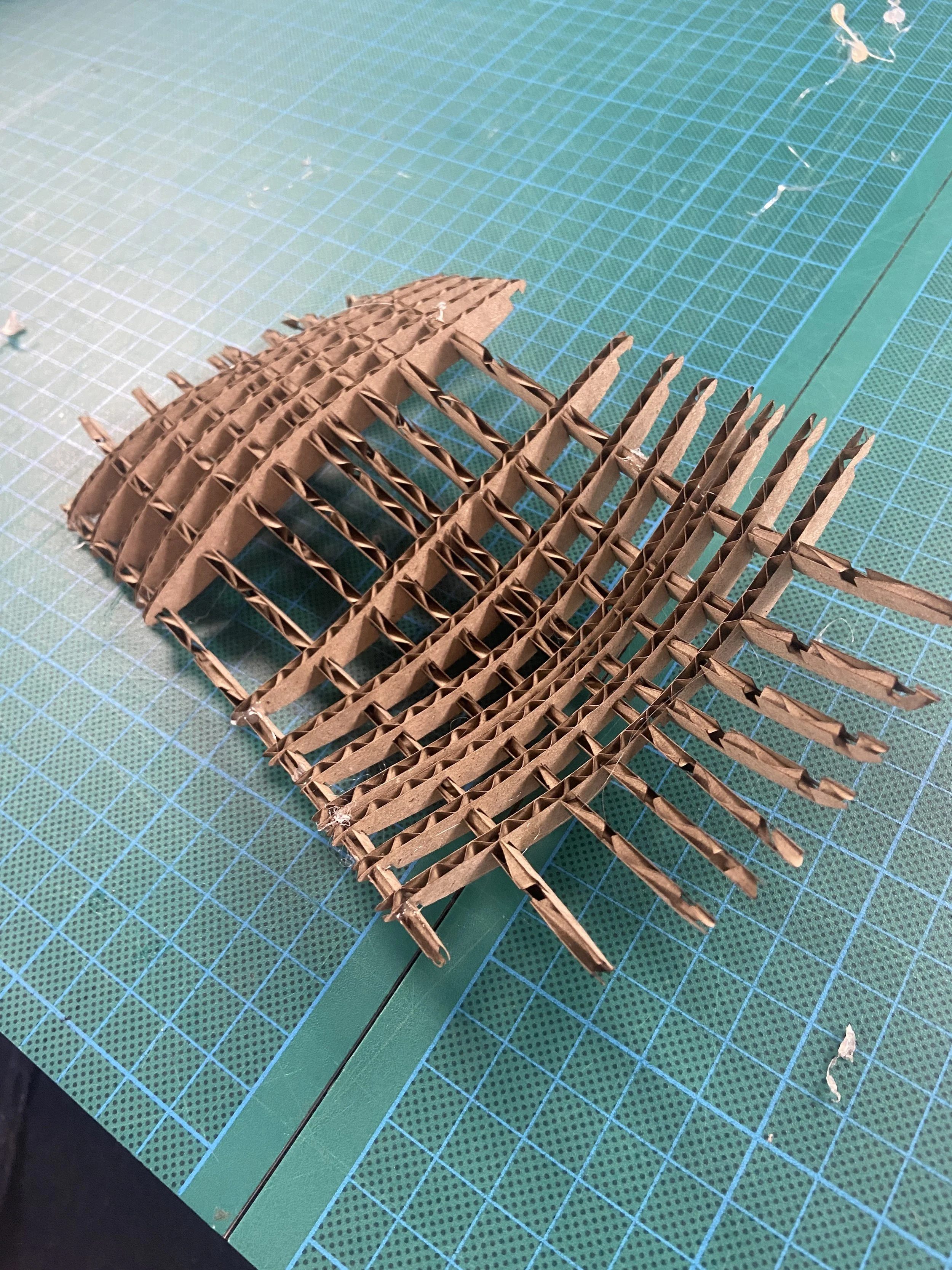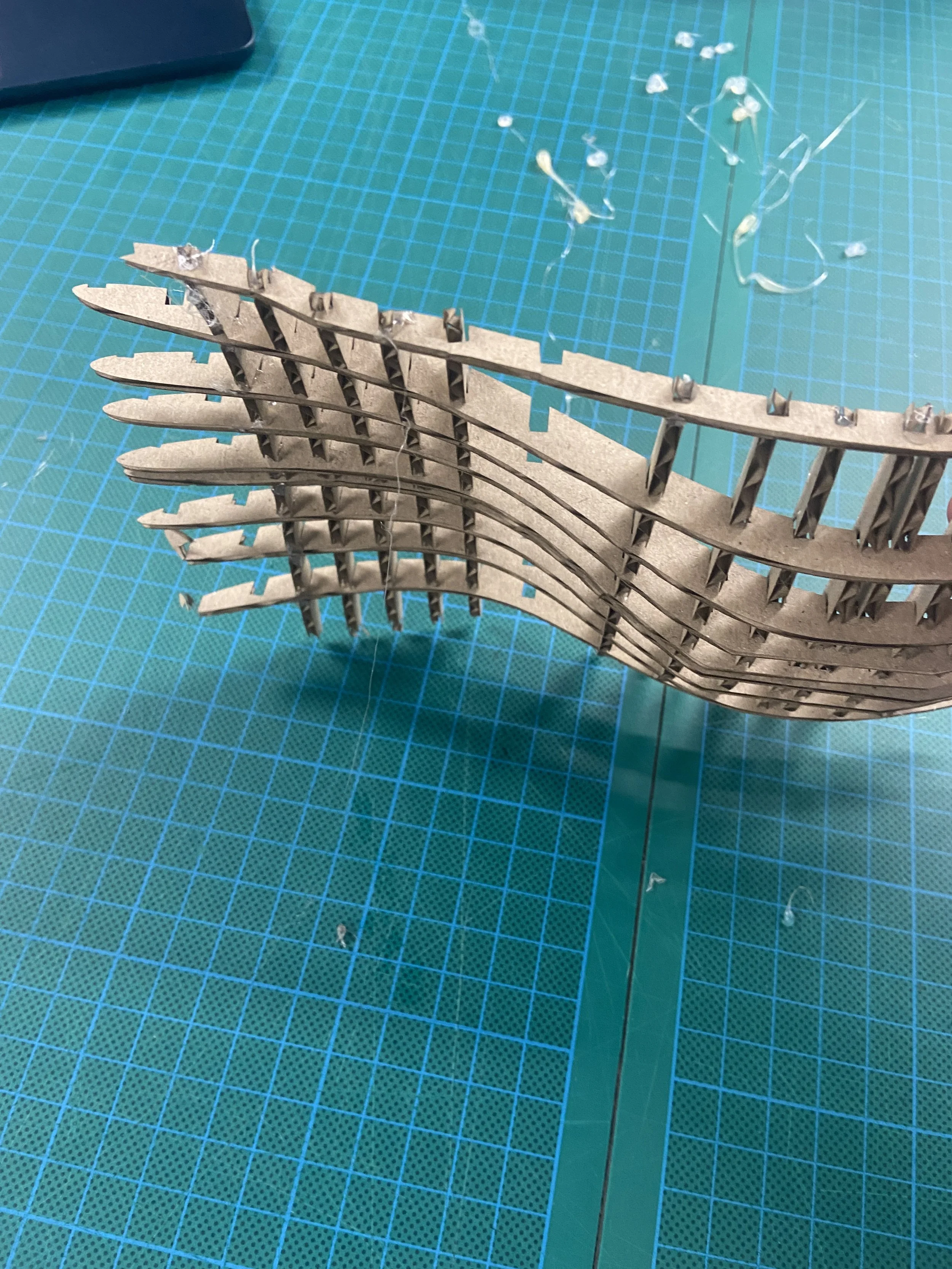 The final design is made from 32 laser cut 4mm ply wood pieces and a single stainless steel ‘catch’. The main structure is interlocked using slots without additional adhesive.